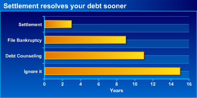 Settlement is one scenario that allows you to solve your debt problems in far less time and ... more effectively in many cases. Why not value your time more and choose an option that lets you have more time and freedom?